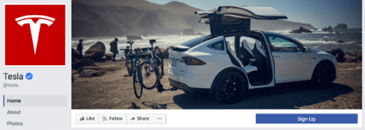 This cover photo on Tesla’s official page is the perfect example of a great Facebook cover photo. You’ll notice that the design is kept minimal, and the company is letting their product do the talking.