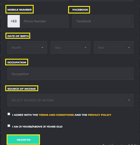 Note: Keep in mind, you can register if you are 21 years or more than 21 years old. And before clicking the register button, read the terms & conditions and privacy policy.